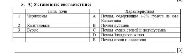 3. Бурые А почвы, содержащие 1-2% гумуса на юге Казахстана; B почвы пустынь серо- бурые.