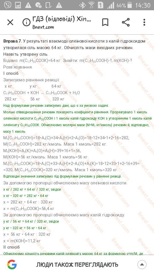 У результаті взаємодії олеїнової кислоти з калій гідроксиду утворилася сіль з масою 64кг.Обчисліть маси вихідних речовин