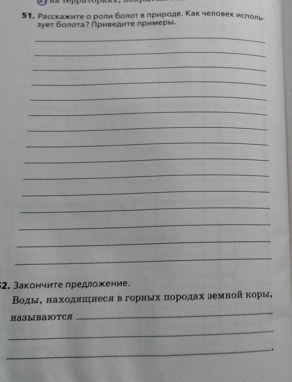 51-Во-первых, это место обитания множества влаголюбивых представителей животного и растительного мира. Во-вторых, на заболоченных местностях происходит естественная фильтрация воды. Наконец, болота являются источником полезного для человека сырья: торфа, лекарственных растений, корма для домашних животных.