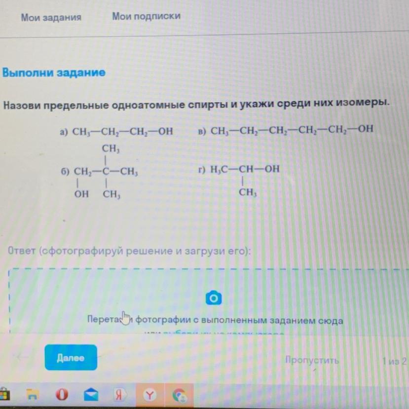 Назови предельные одноатомные спирты и укажи среди них изомеры.
