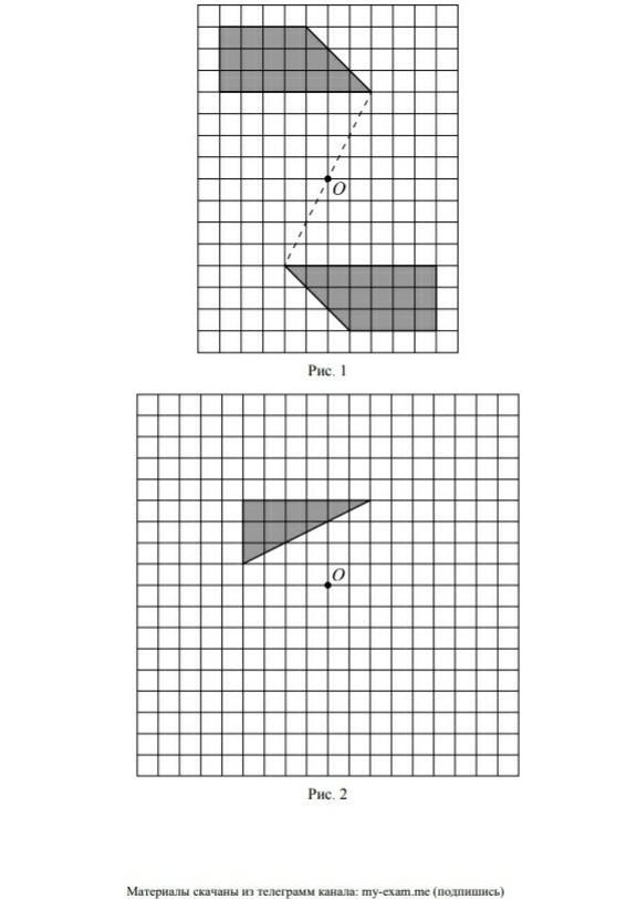 На рисунке 1 показаны фигуры, симметричные относительно точки O. На рисунке 2