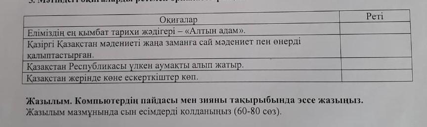 Толығырақ: https://faktiler.kz/kompjuterdin-pajdasy-men-zijany/Компьютердің адам ағзасына зияны Компьютерлердің адам ағзасына кері әсері: құрылғыдан шығарылған сәуле денсаулыққа зиянды; шамадан тыс қолдану, адамның көру қабілетінің бұзылуына әкеліп соғады (катаракта басталуы мүмкін); ұйқысыздық және бас ауыруы пайда болады; егер адам компьютердің алдында ұзақ уақыт отырса, онда жасөспірімдерде сколиоз, ал ересектерде остеохондроз ауруы болуы мүмкін; жасөспірімдерге ұзақ көп бойы ойын ойнау, өте қауіпті; иммунитет төмендейді. Балалар бақыланбайтын болса, интернеттен психикасын бұзатын көптеген ақпараттарға тап болады. Бұл әртүрлі эмоциялықдық ауытқуларды тудыруы әбден мүмкін. Ұқсас: Ұялы телефонның пайдасы мен зияны Компьютердің пайдасы Компьютерлердің артықшылықтары: арнайы бағдарламалар арқылы жұмыс процесін барынша оңтайландыру (бұл еңбек өнімділігінің артуына әкеледі); бұл құрылғы құңды файлдардың сенімді сақталуын қамтамасыз етеді; пайдаланушыға қажетті ақпаратты жылдам табуға мүмкіндік беру; интернетте сақталатын үлкен ақпараттың арқасында, адамның білімін арттырады; алыс жердегі достарымен хат алмасу және бейне байланыс арқылы (кез келген уақытта) қарым-қатынас жасау мүмкіндігі. Егер сіз компьютерді ақылға қонымды шектерде қолдансаңыз, дұрыс қолдану тәсілдерін білетін болсаңыз, оның адам денсаулығына зияны едәуір азайтылады.
