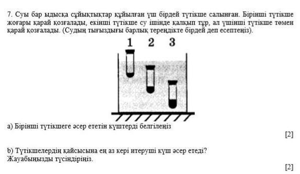 а) на первую пробирку действует выталкивающая сила ( сила Архимеда )