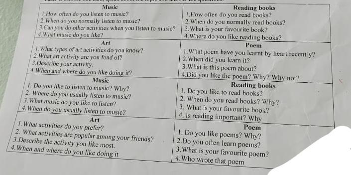 Тема: reading books, где первый вопрос: do you like to read books?