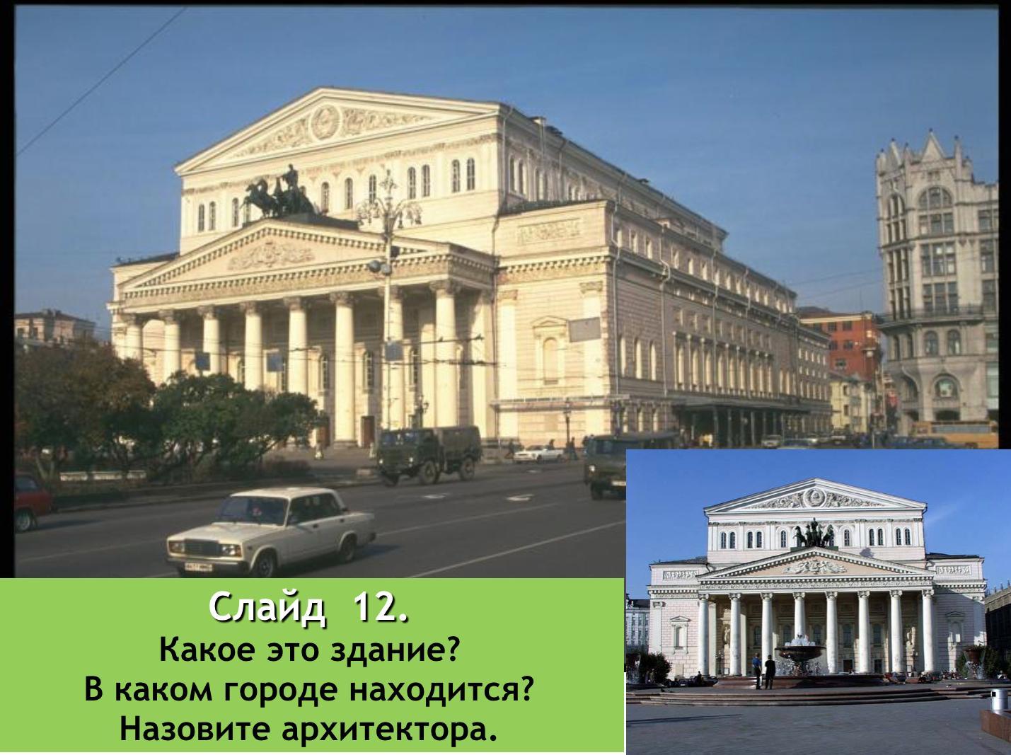 Большой театр, находится также в Москве, архитектор О.И.Бове.