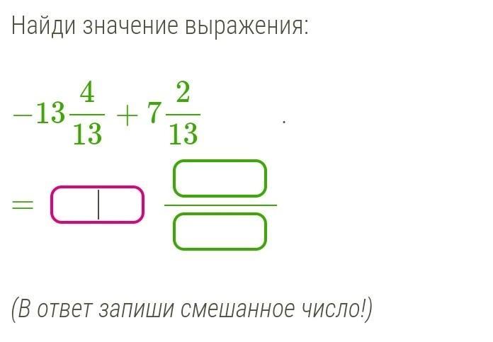 Ответ: минус шесть целых две тринадцатых (-6 2/13)