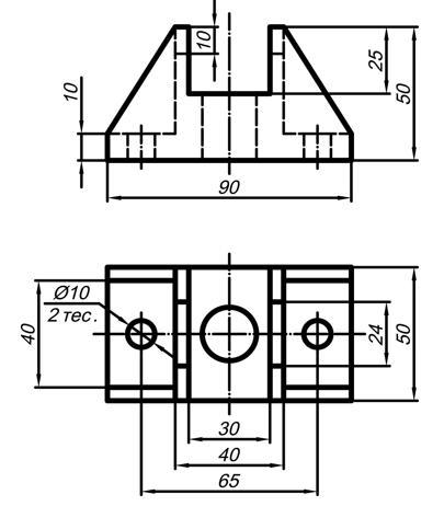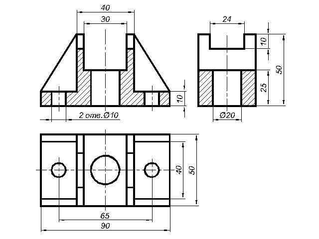 Помогите пожалуйста.По двум заданным видам детали построить вид слева, выполнить на этих видах целесообразные простые разрезы, нанести размеры. Построить аксонометрическую проекцию детали.
