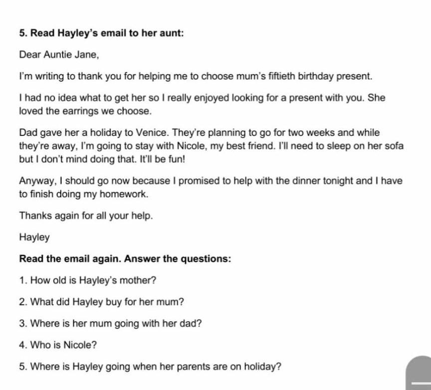 Dad gave her a holiday to Venice. They're planning to go for two weeks and while
