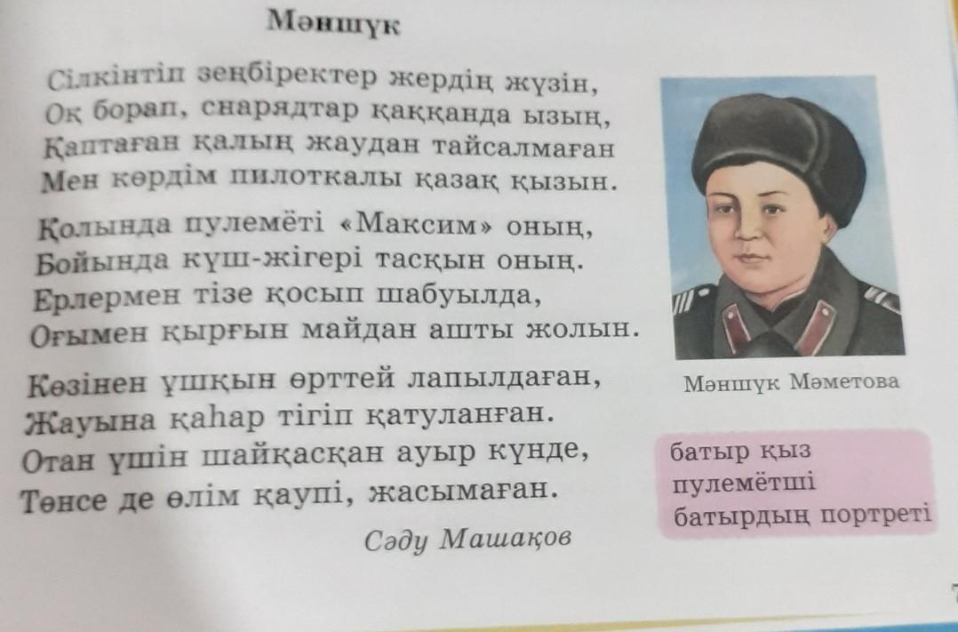 6. Ақын сөздерін пайдаланып, Мәншүкті сипаттап жаз.