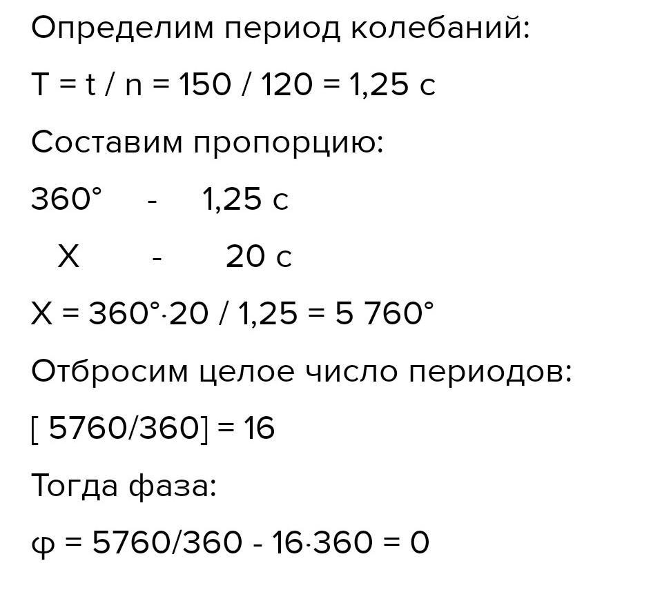 Материальная точка за 2 мин совершила 120 полных колебаний. Определите фазу в момент времени 20 с.