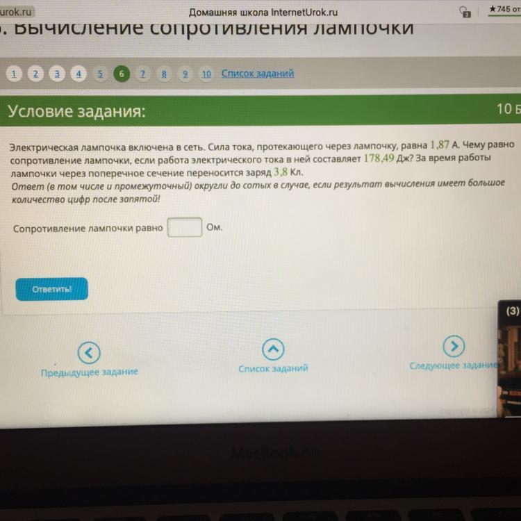 Найдем напряжение U=A/q=178.49/3.8=47 B