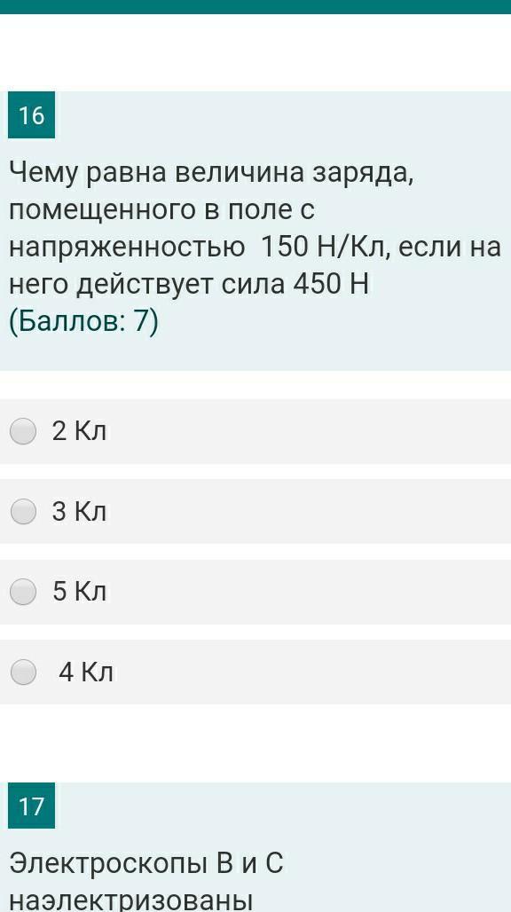 Чему равна величина заряда, помещенного в поле с напряженностью 150 Н/Кл, если на него действует сила 450 Н