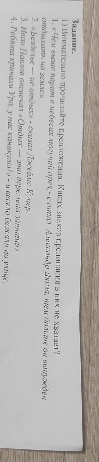 1) Внимательно прочитайте предложения. Каких знаков препинания в них не хватает?