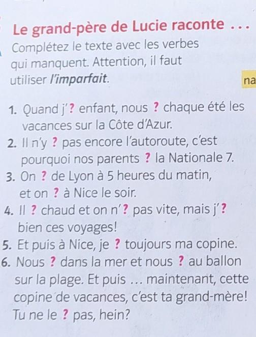 6. Nous nagions dans la mer et nous volions au ballon sur la plage. Et puis ... maintenant, cette copine de vacances, c'est ta grand-mère! Tu ne le disait pas, hein?