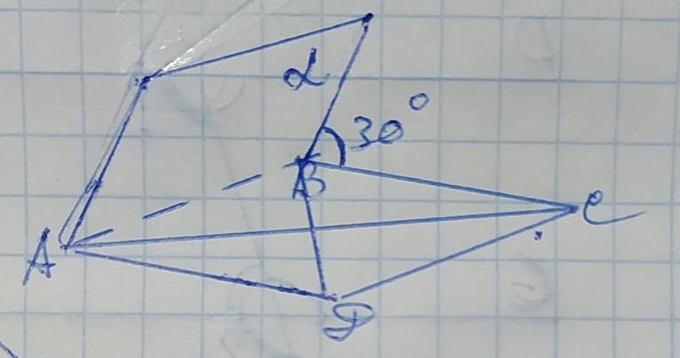 произведению площади проецируемого ромба на косинус угла между плоскостью ромба и плоскостью Альфа: