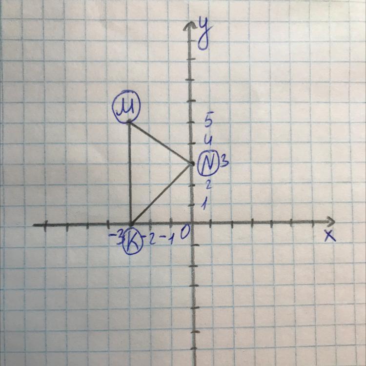 4. На координатной плоскости постройте треугольник по координатам вершин: М(-3; 5); N(0; 3) и К(-3; 0).
