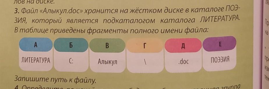 первое: ты не пояснила не фига сути задания. Там написано русскими буквами: укажите путь к фалу, что и было мною сделано: указан диск с, после каталог и подгаталог - папка и сам файл. Легко подставляемые данные в таблице дают путь к файлу, что тебе и нужно