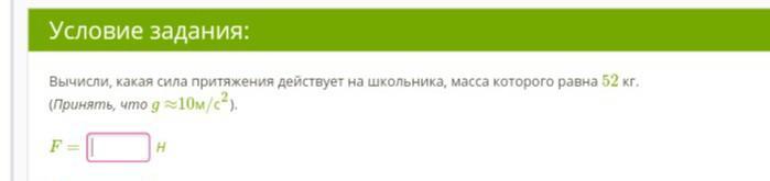 Дано: m=52 кг; g=10 Н/кг; F - ?