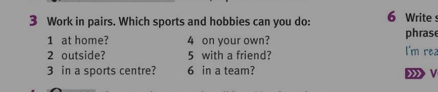 если что там написано: какими видами спорта и хобби вы можете заняться ; дома ? на улице? в спортзале? самостоятельно? с друзьями ? в команде?