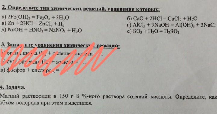 Mg + 2HCL = MgCl2 + H2 (Реакция замещения)