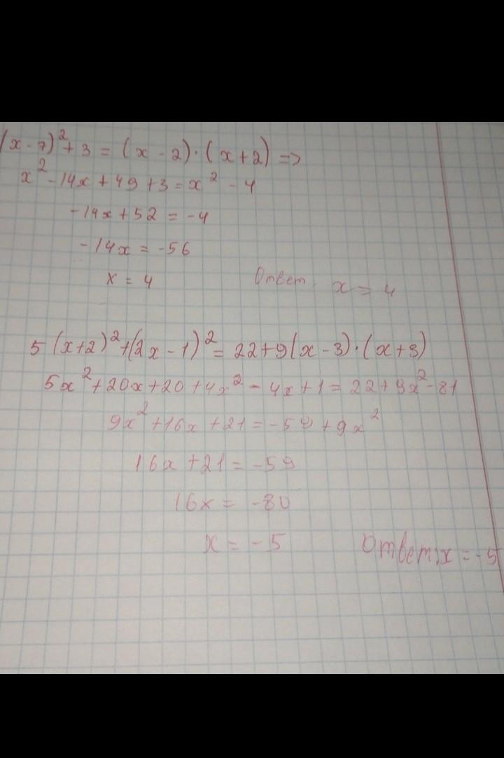 Розв’яжіть рівняння: а) (х – 7)^2 + 3 = (х – 2)(х + 2);