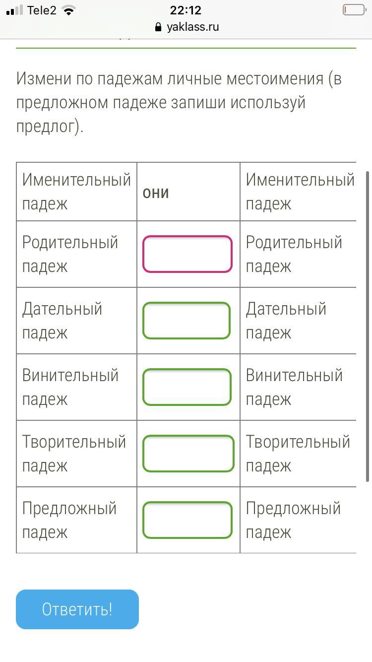 Измени по падежам личные местоимения (в предложном падеже запиши используй предлог).