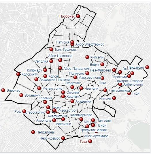 Схему Афин с указанием основных районов прилагаю на фотографии