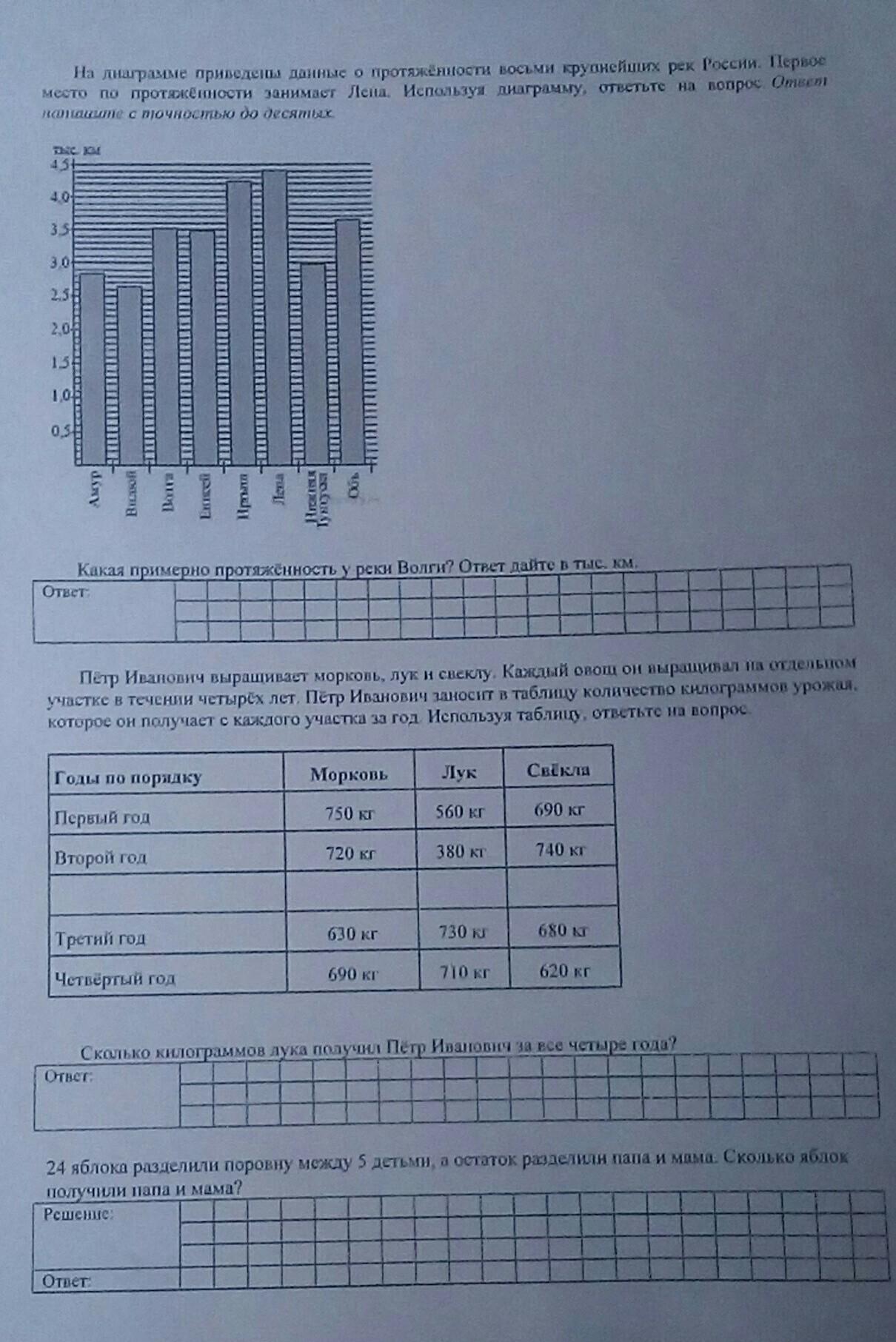 1) Смотрим на диаграмму и находим Волгу. По ней видно, что у Волги протяжённость примерно 3,5 тыс. км