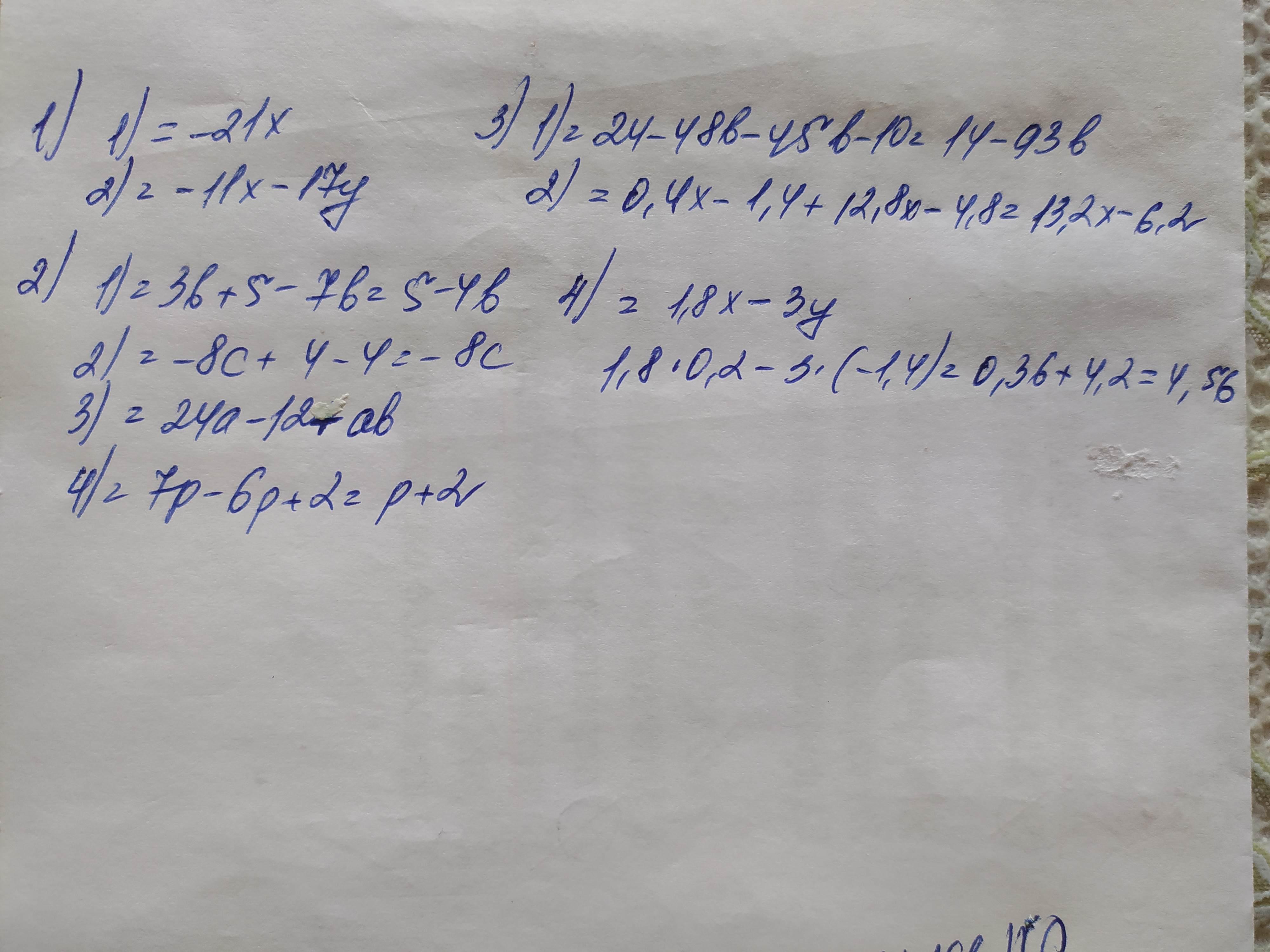 -0,2 -2x + 7) + 1,6(8x - 3) где сначала скобка