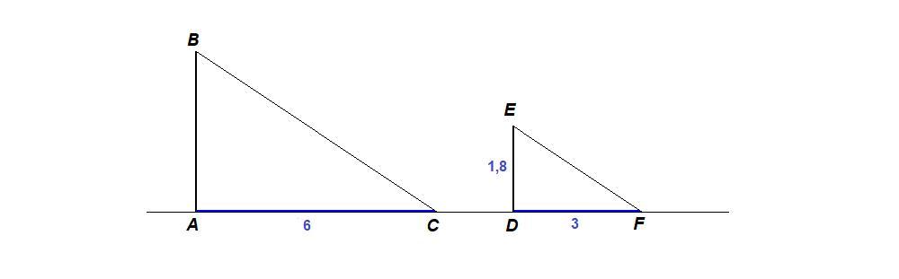 Длина тени дерева равна 6 м, а длина тени человека рост которого 1,8 м