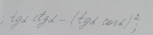 tg a * ctg a - (tg a * cos a)^2= 1- (sin a)^2=(cos a)^2