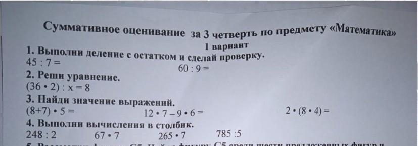 1) 45:7=6 (ост 3) 60:9=6 (ост 6)