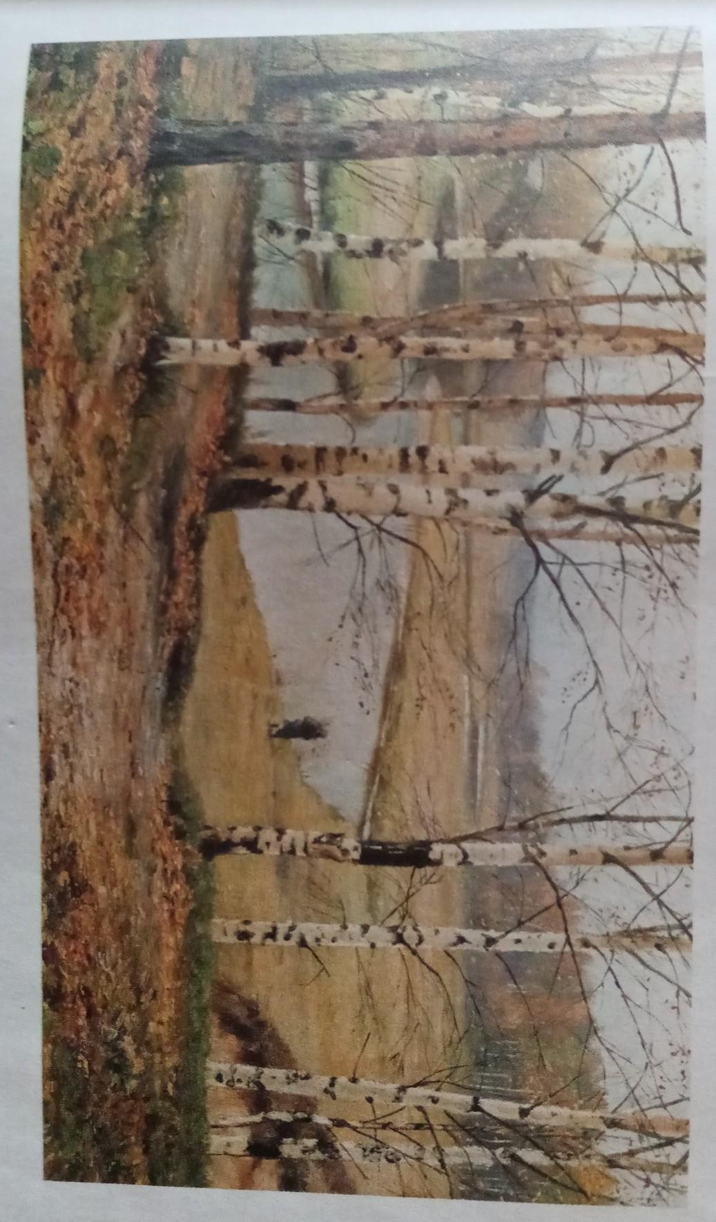 Берёзы как будто уходят вдаль, ими заполнена вся картина. Создаётся ощущение, что стоишь посредине берёзовой рощи. Деревья окружают тебя и права, и слева. Берёза – символ России.