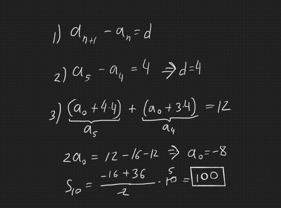 вот надо вспомнить если мы будем вычитать два соседних члена получим разность прогрессии после распишим сумму через формулу an=a0+(n-1)*d