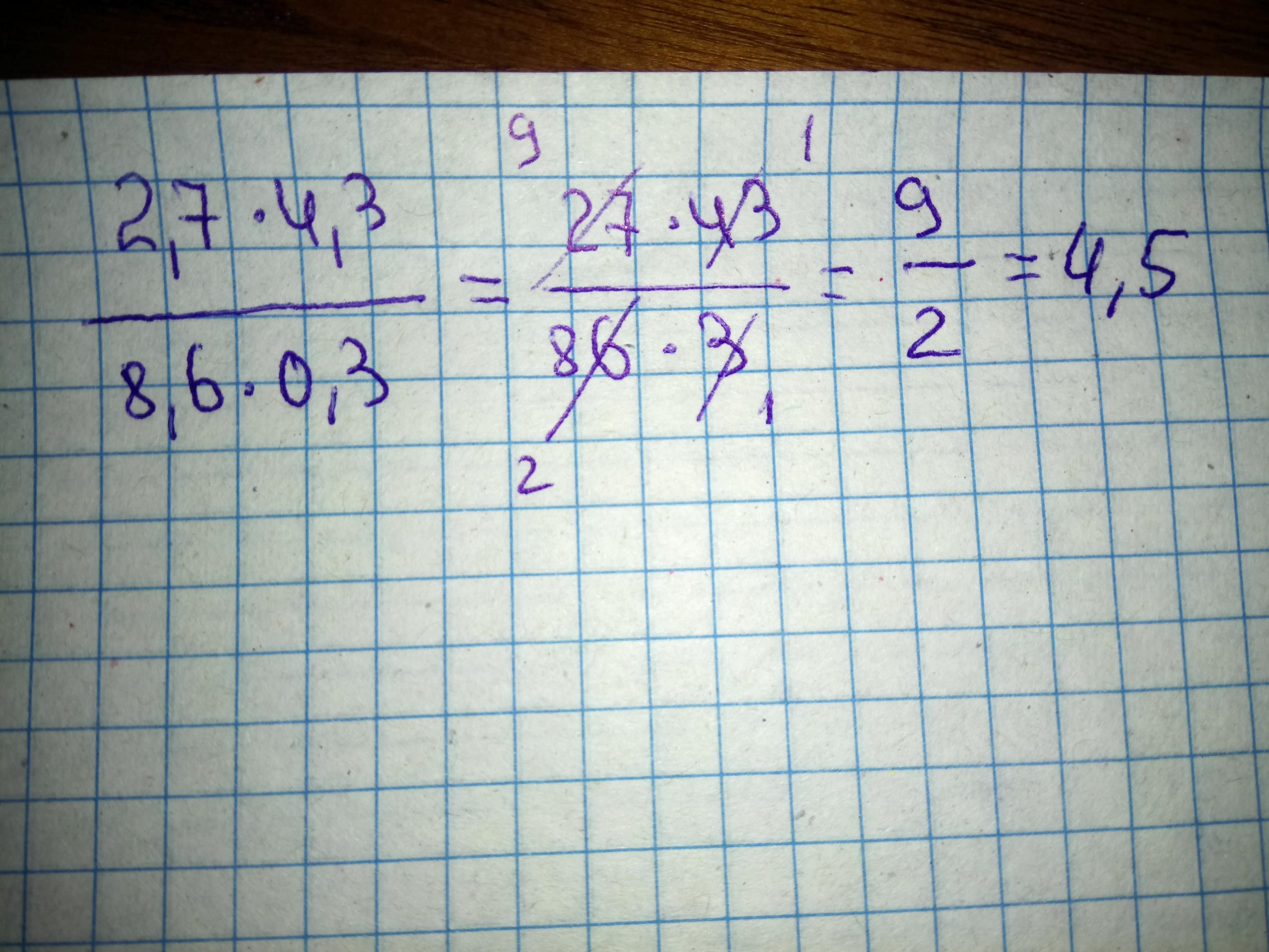 Сократите 2,7 и 0,3, это 9. 4,3 и 8,6, это 1/2. Тогда 9/2=4,5