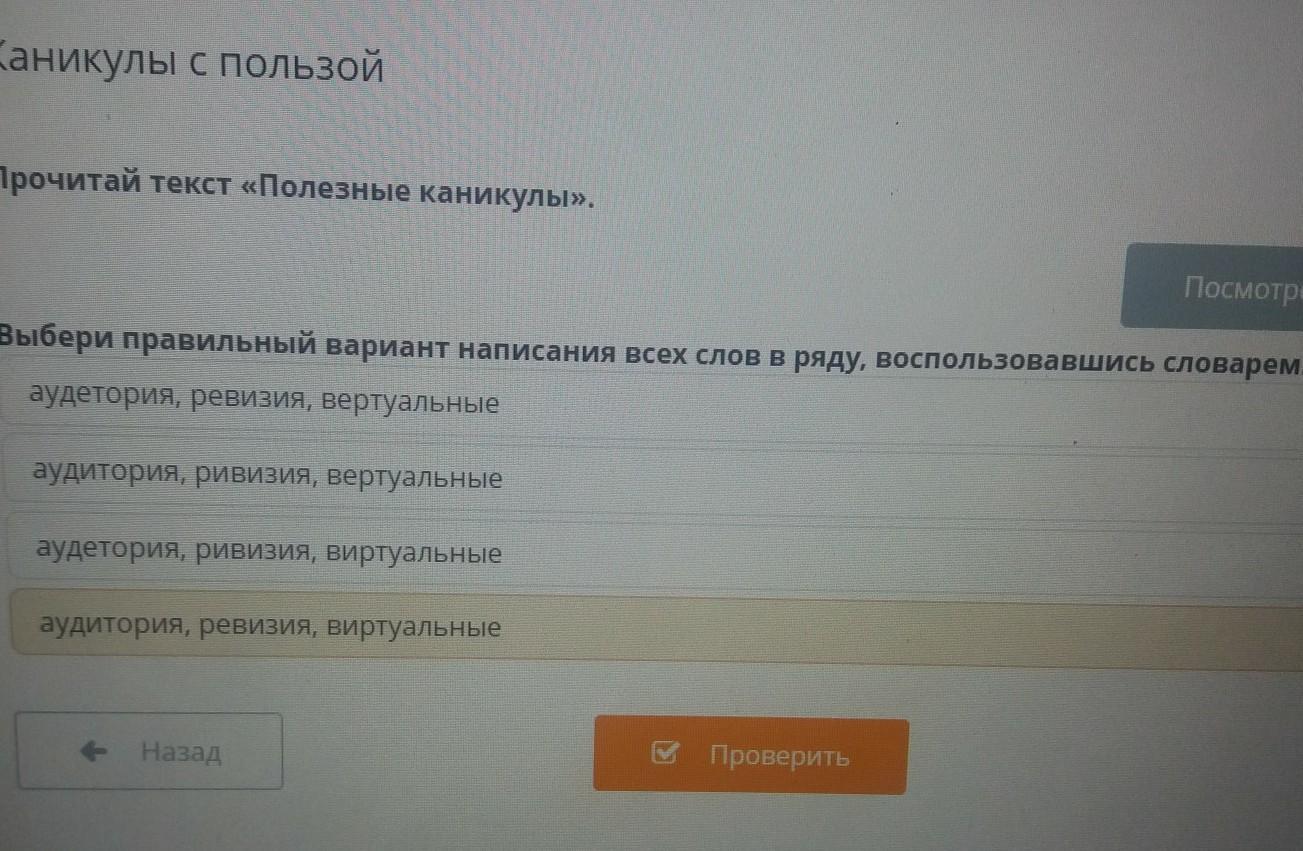 Выбери правильный вариант написания всех слов в ряду, воспользовавшись словарем.