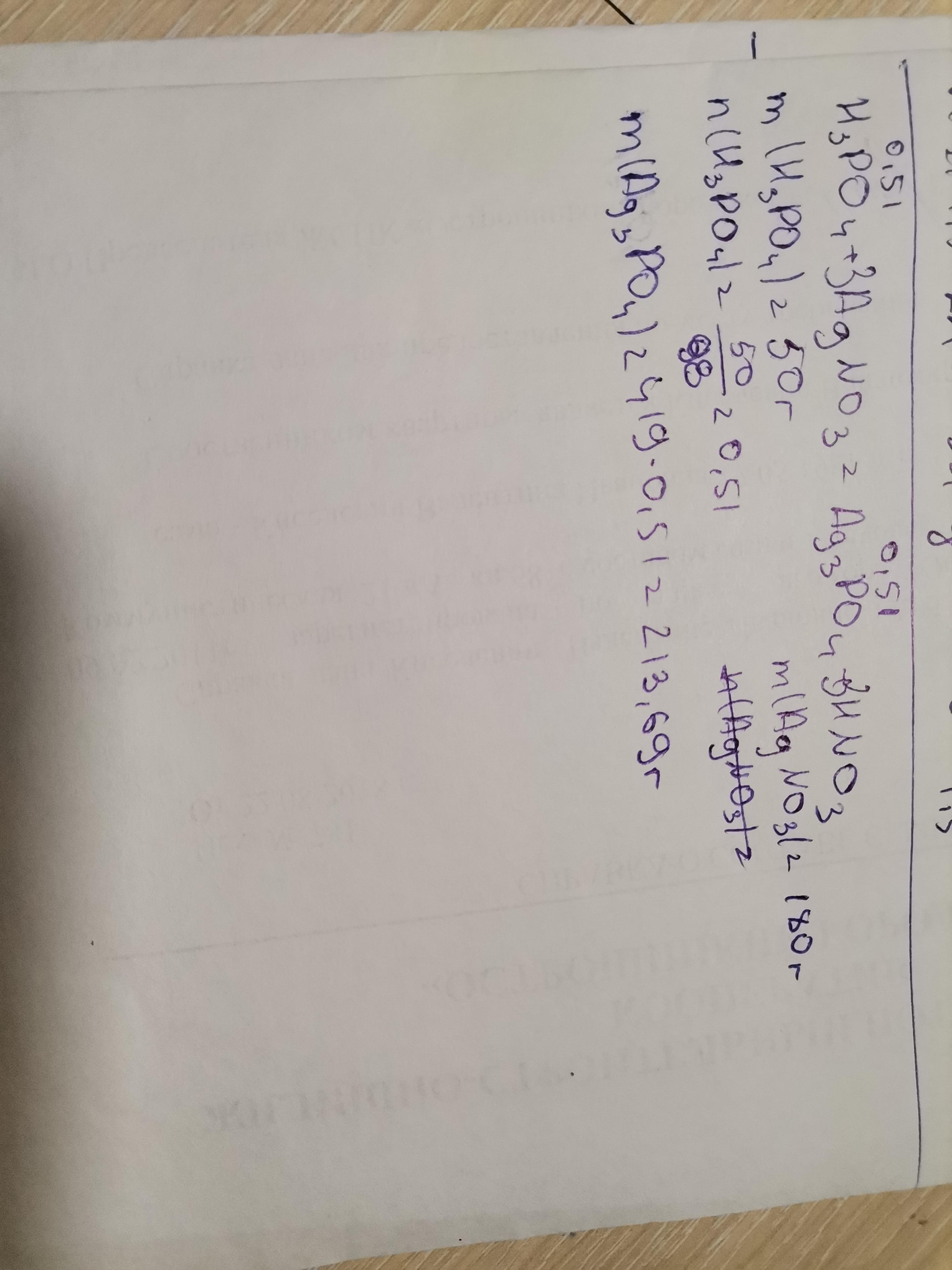 при взаимодействии раствора фосфорной кислоты с массой долей 25%, а массой 200г с раствором нитрата серебра массой 180г, получили соль с массой ?