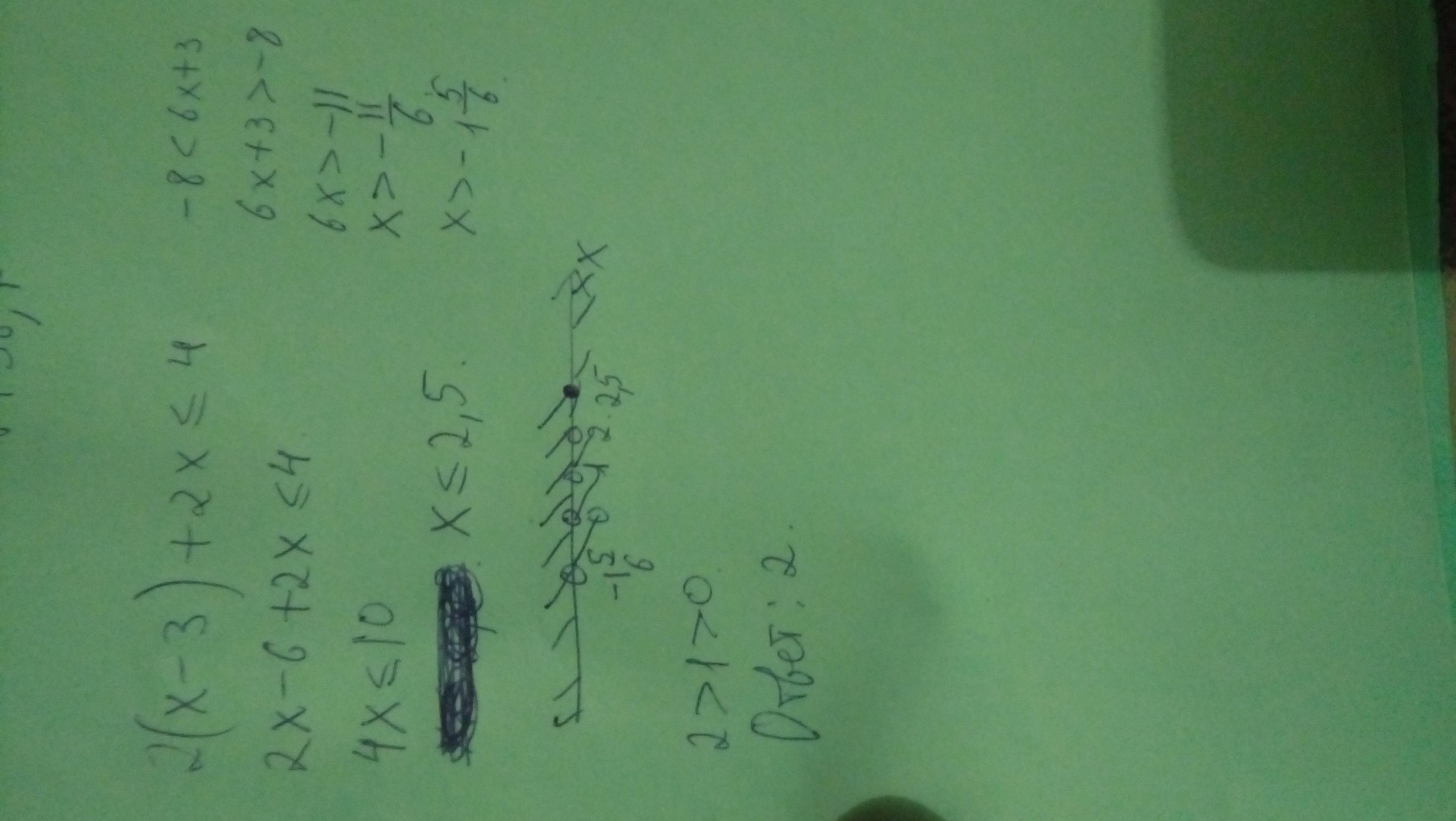 Решение системы неравенств х∈(-1 и 5/6; 2,5], пересечение.