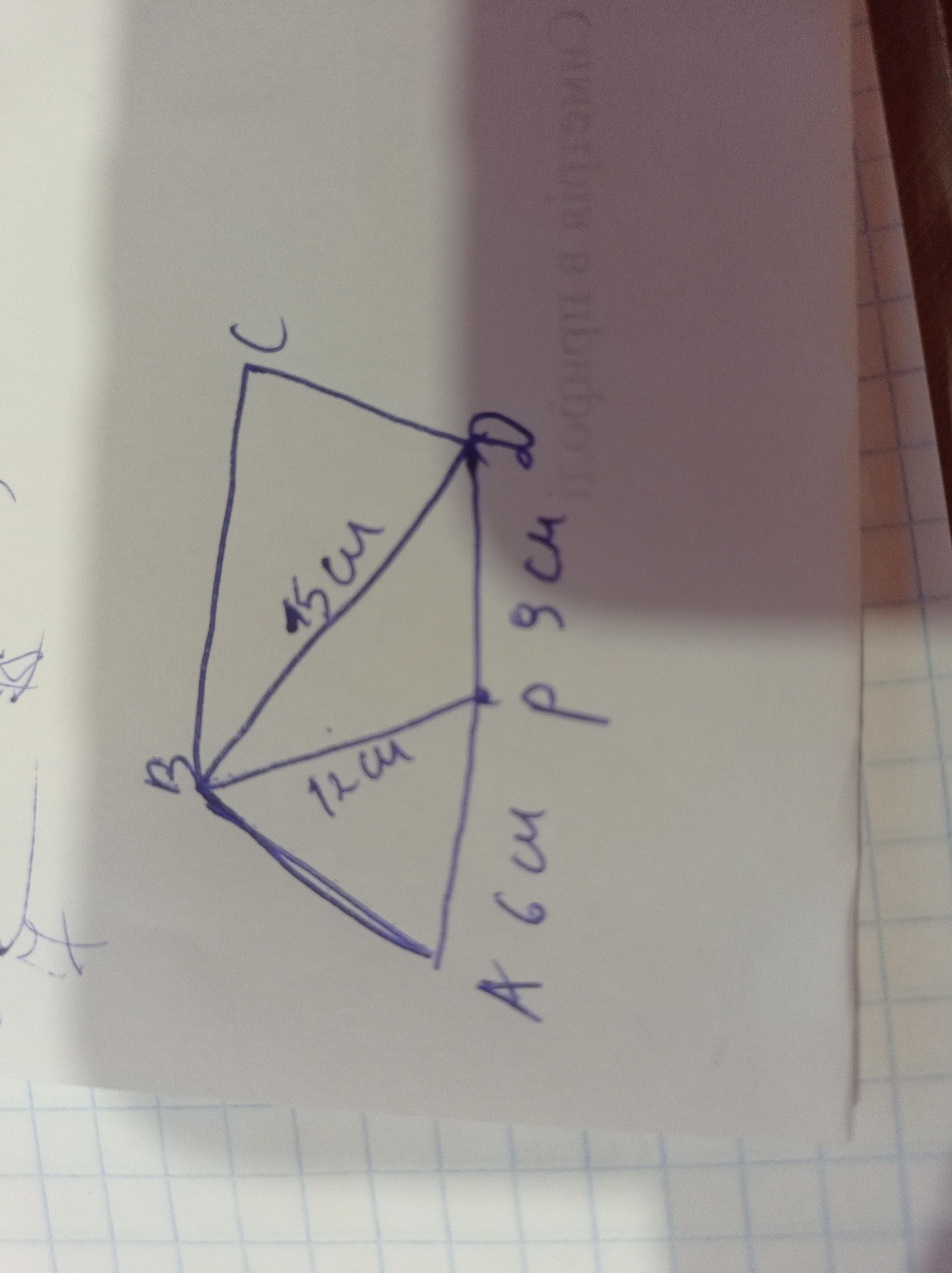 на стороне AD параллелограмма ABCD взята точка P так что AP=6см, PD=9см, BD=12см, BD=15см. Найдите S-площадь параллелограмма.