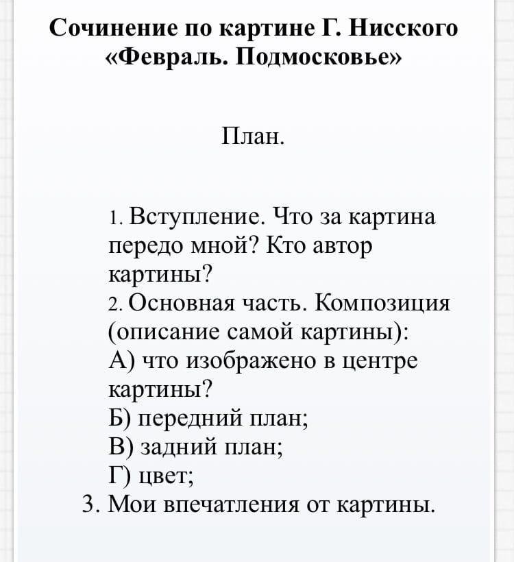 Перед нами - пейзаж. Природа не плачет, хотя и готовится к весне. Глядящий на картину видит бесконечную дорогу с двигающейся машиной, на склоне - летящий только вперед паровоз. Цвет неба и дыма одинаковый. Должна сказать, что свод небесный розоват, а по примете сие - к холоду. На переднем плане мы видим лыжницу, которая куда-то спешит. Слева - угрюмые вечнозеленые ели,. За ними - церковь. Художник Нисский передает и движение жизни человеческой, и застенчивый характер непроснувшейся природы Когда смотришь на полотно, то понимаешь, что "зима будет большая", и неяркие краски, которые использует мастер ,"свидетельствуют" об этом. Смотрите на картину чаще и удивляйтесь русскому февралю.