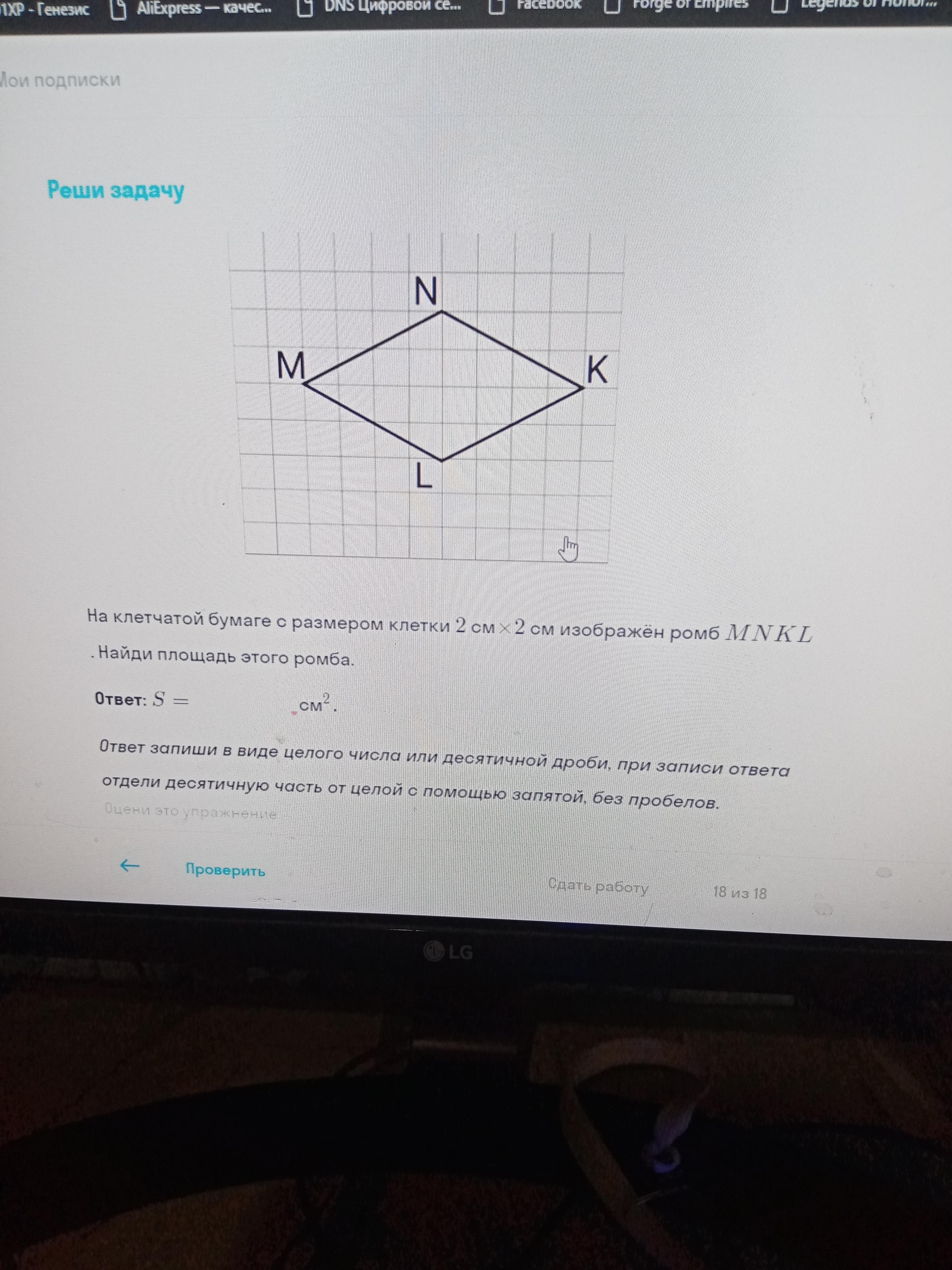 S=1/2(d1*d2)=1/2(16*8)=8*8=64