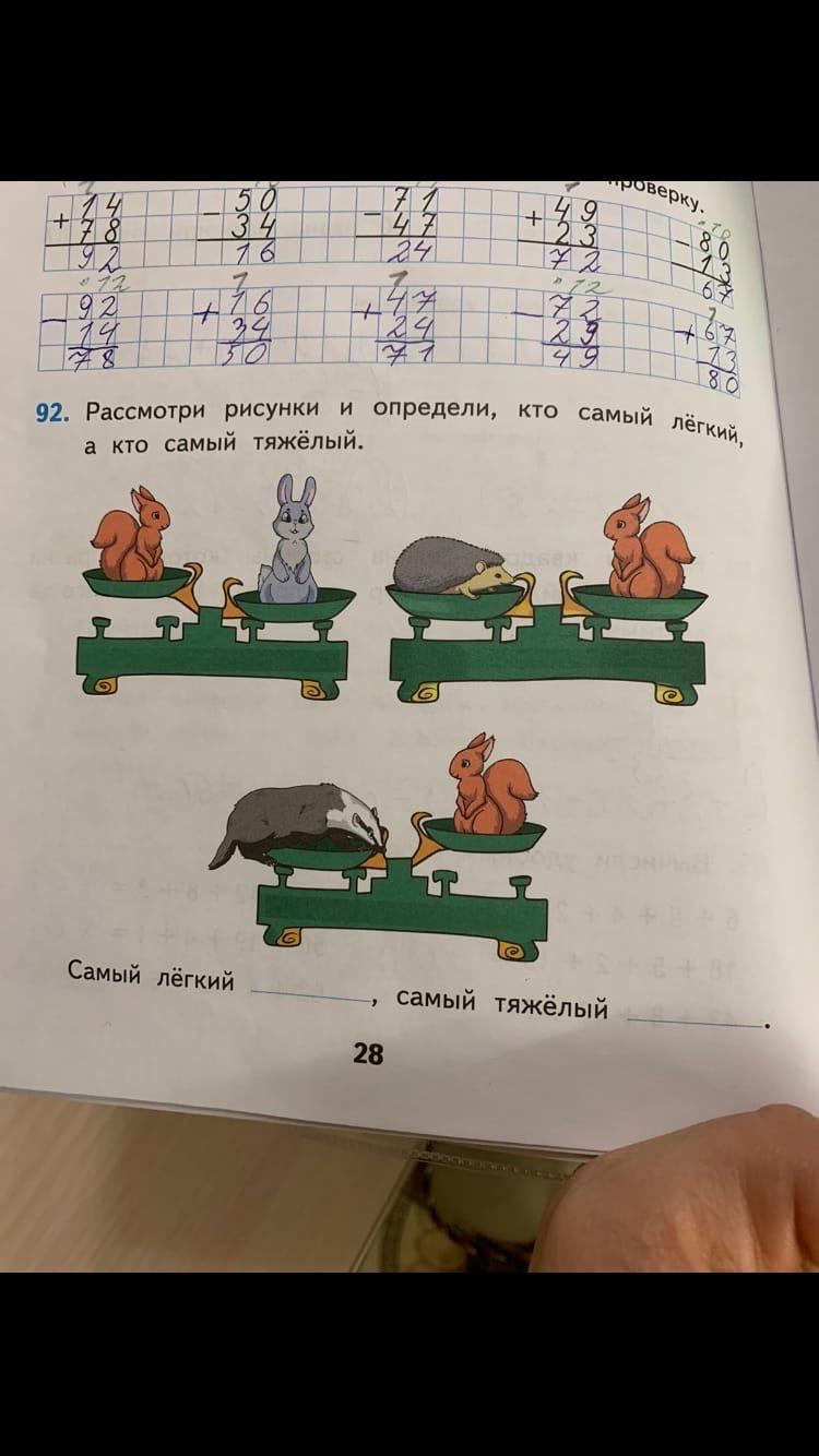 Рассмотри рисунки и определи, кто самый лёгкий,