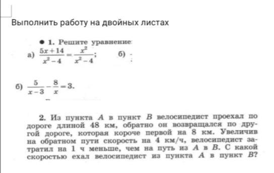 3) из пункта А в пункт В велосипедист проехал по дороге длиной в 48 км, обратно он возвращался по другой дороге. Увеличив на обратном пути скорость на 4 км/ч, велосипедист затратил на 1 ч меньше, чем на путь из А в В. С какой скоростью ехал велосипедист из пункта А в пункт В?