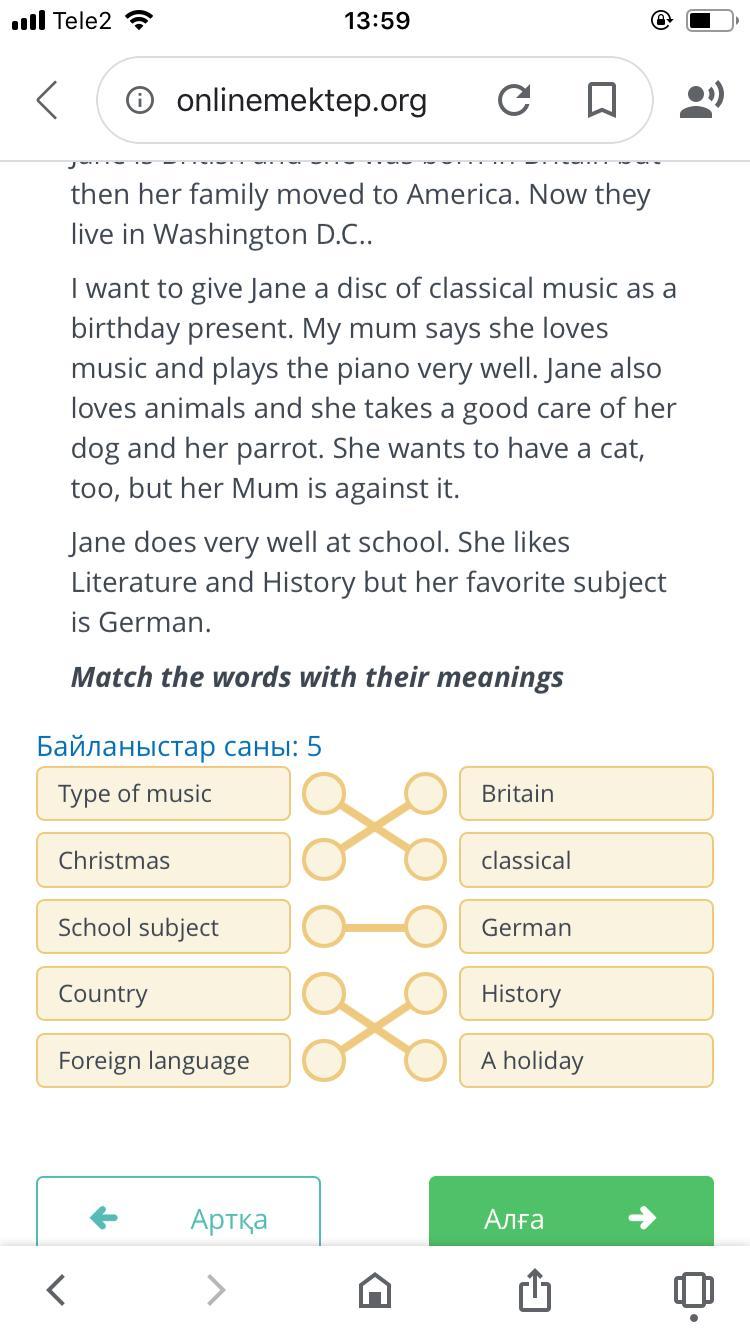 Jane does very well at school. She likes Literature and History but her favorite subject is German.