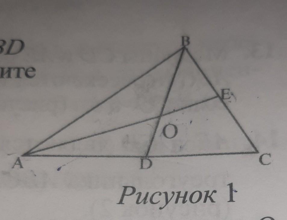 Медианы BD и AE треугольника ABC пересекаются в точке O найдите разность OE-OD если AE-BD=9 см(рисунок 1)
