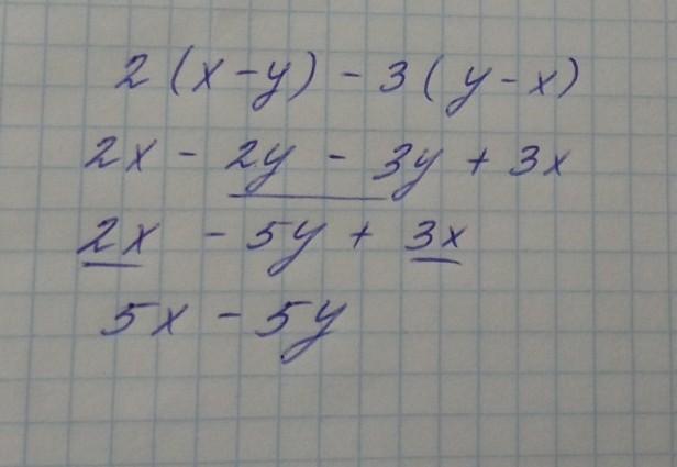 2*(x-y)-3*(y-x) ⇒ раскрываем скобки
