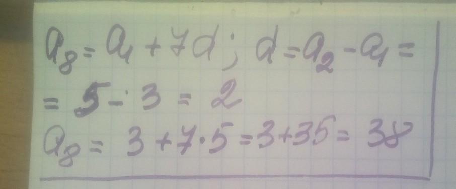 перший член арифметичний прогресий доривнюе 3 а другий 5 знайдить восьмий член арифметичной прогресий