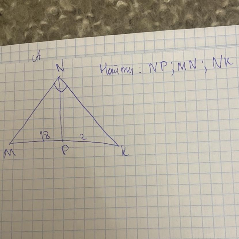MN=√(MP*MK)=√(18*20)=√360=6√10