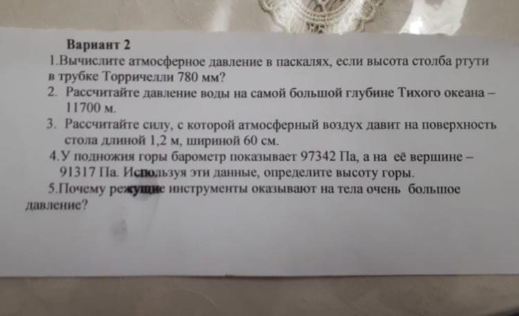 4) каждые 12 метров давление меняется на 1 мм рт.ст = 133,3 Па, тогда вычтем давление на подножье горы из давления на вершины горы - и разделим на 133,3 Па, умножим на 12 метров, получим высоту горы