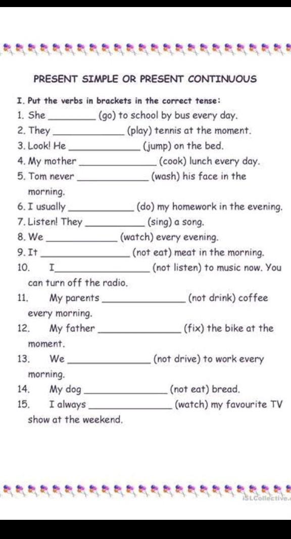 12. My father fixes the bike at the moment.